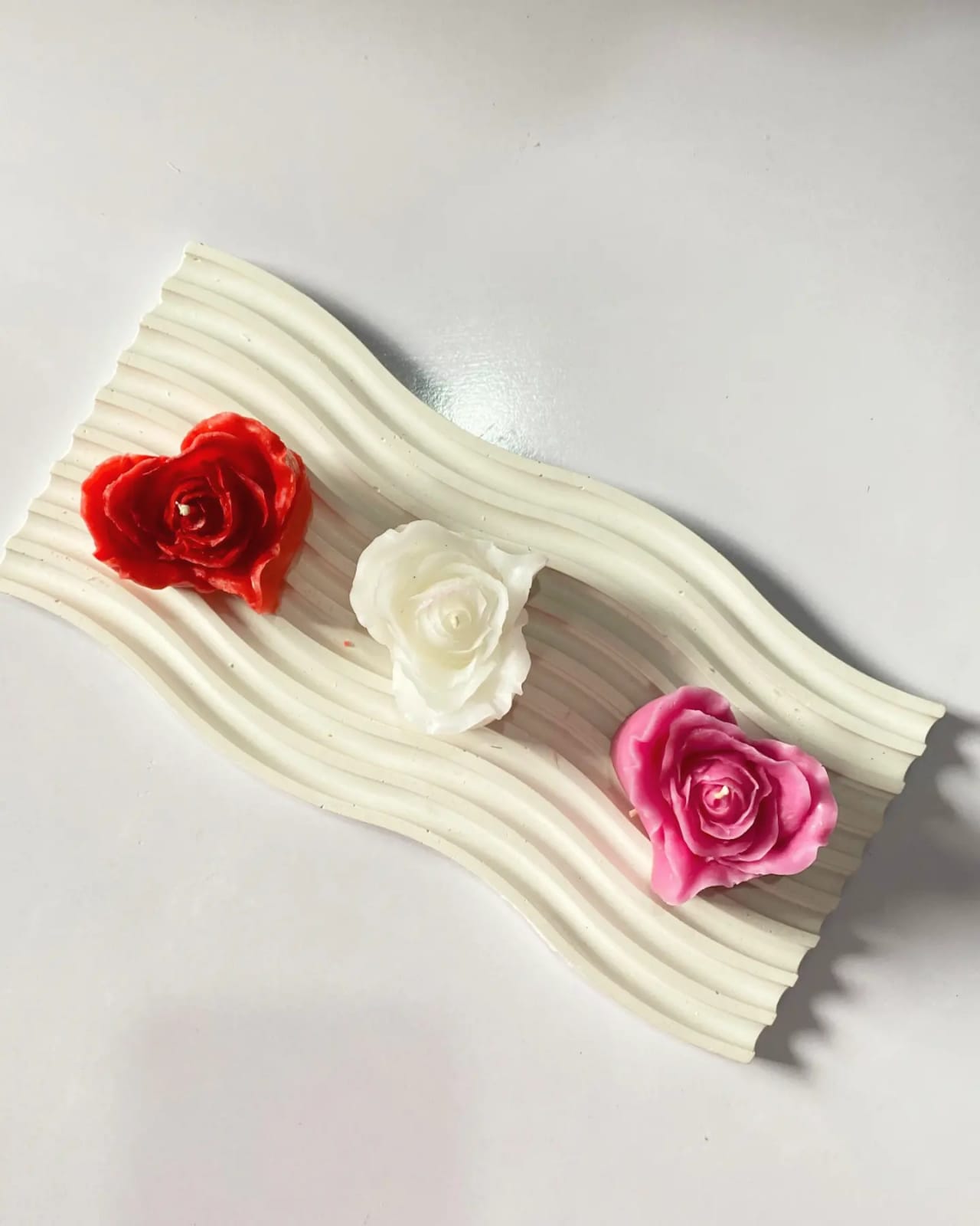 The Wave Tray with Heart Candles is the perfect addition to any space, providing a serene atmosphere and a touch of elegance. Featuring a unique wave design and 3 heart-shaped candles, this tray creates a warm and inviting glow, perfect for romantic occasions or unwinding after a long day.